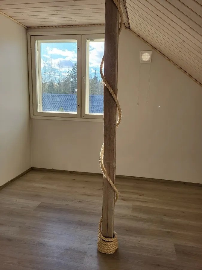 | Pintamateriaalit | Puulattia olohuone-keittiössä, Parketti makuuhuoneessa, Yläkerran aulassa vinyylilattia, huoneissa laminaatti, Pesutila laatoitettu |